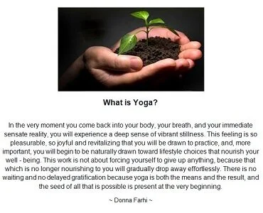 I occasionally teach a very beginner’s Yoga class for the purpose of supporting people’s need to make lasting lifestyle changes.